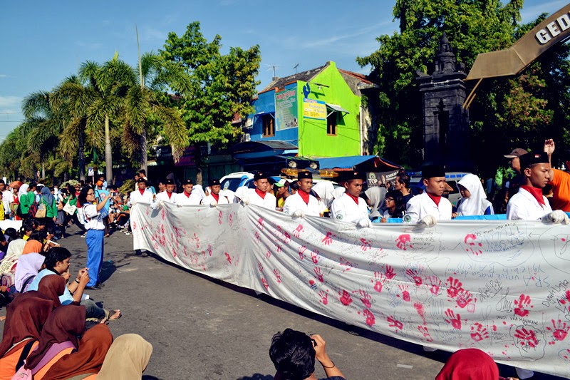 deretan pagar seorang pemuda yang tegap dengan langkah yang matang, membuka jalur untuk kegiatan kampanye ini, dengan membawa berbagai bendera, salah satunya sang saka merah putih yang dimaksudkan untuk menggebrak semangat para pemuda. berawal dari kantor bupati Kabupaten Klaten, kita langkahkan kaki untuk kegiatan ini.
