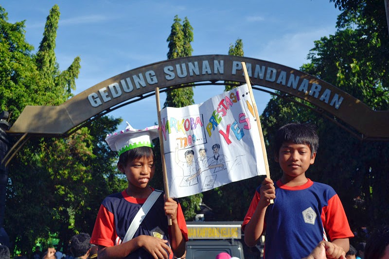 itulah slogan yang kedua anak ini ingin sampaikan kepada para orang dewasa, ajari mereka pendidikan bukan ajari mereka untuk mengenal narkoba yang akan merusak hidup mereka.