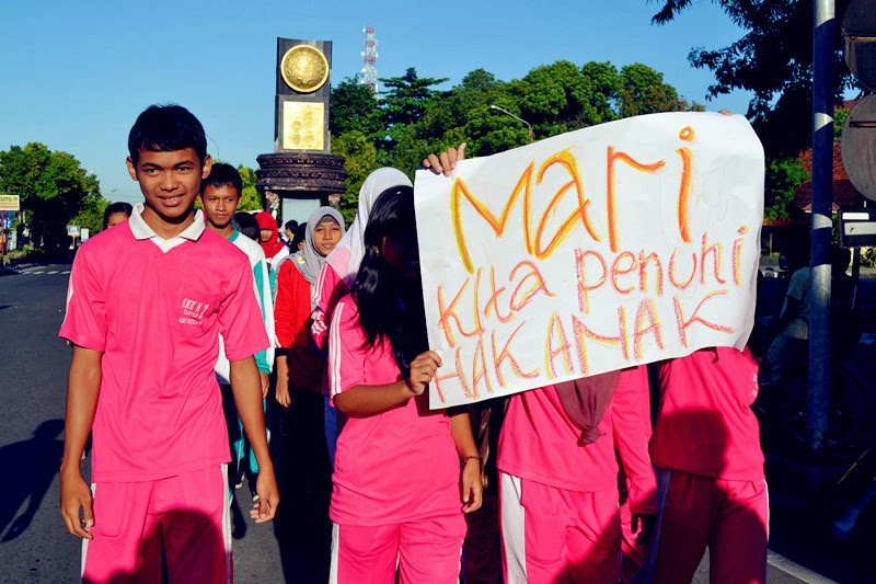 mari kita penuhi hak anak, yha itulah salah satu poster yang kami bawa, agar orang lain pun mengerti maksud apakah kita melakukan kegiatan ini, terutama kita fokuskan kepada sekolah yang ramah anak.